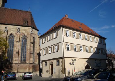 liegt mitten im Herzen der historischen Altstadt von Cannstatt am Marktplatz zwischen Stadtkirche und Rathaus im Gebäude des alten Dekanats. Das denkmalgeschützte Gebäude wurde im 16.Jahrhundert erbaut und verfügt neben 15 Unterrichtsräumen und einem historischen Gewölbekeller, der für Veranstaltungen genutzt wird, über einen eigenen Mineralwasserbrunnen. So zentral gelegen, ist das Institut mit öffentlichen Verkehrsmitteln leicht zu erreichen. Mit der U14 kommend, steigen Sie an der Rosensteinbrücke aus. Von dort führt der Fußweg über den Neckar zum Marktplatz. Mit den Linien U1 und U2 oder der S-Bahn steigen Sie am Bahnhof Cannstatt/ Wilhelmsplatz aus: Von dort aus gelangen Sie über die Marktstraße (Fußgängerzone) Richtung Neckar in ca. 5 Minuten zum Institut.